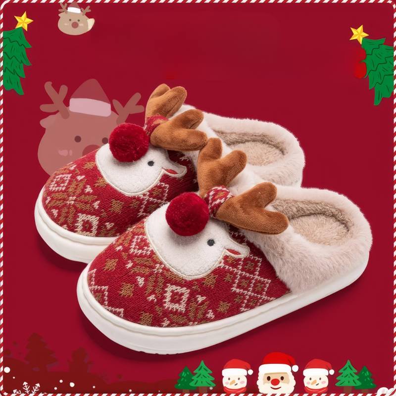 Nos pantoufles insufflent instantanément l’esprit des fêtes grâce à leur adorable motif renne de noël agrémenté d’une truffe rouge en pompon et de petites cornes en relief. Leur style chaleureux, entre motif tricoté et détails tout doux, en fait des pantoufles rigolo aussi cosy que festives. Elles apportent une touche réconfortante à vos soirées d’hiver tout en affichant un charme irrésistible.