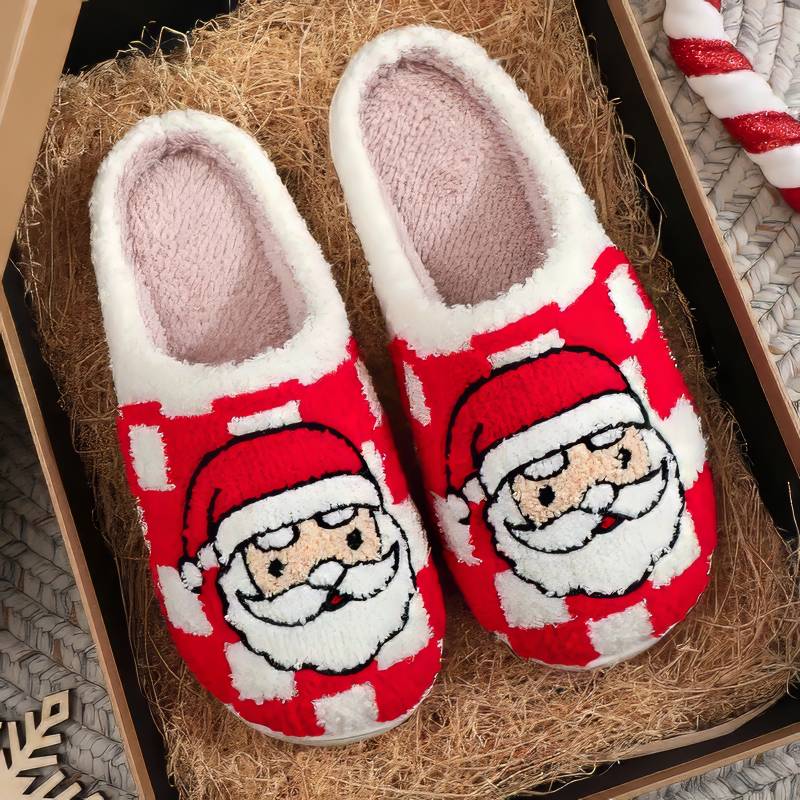 Ces pantoufles de noël rouge apportent instantanément l’esprit des fêtes à vos pieds. Avec leur adorable Père Noël brodé sur un fond rouge pétillant, elles combinent douceur, fantaisie et confort absolu. Leur matière en fausse fourrure et leur style en peluche en font un indispensable pour se mettre en mode cocooning sans perdre une once de bonne humeur.